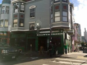 In North Beach, on the corner of Grant and Green, in the picture you see a bar, but back then it was a Hawaiian Bar, and just above that Hawaiian Bar, behind the large bay window you see on the right, along with mice and cockroaches and loud Hawaiian music on the jukebox of the bar downstairs, that’s where I lived.